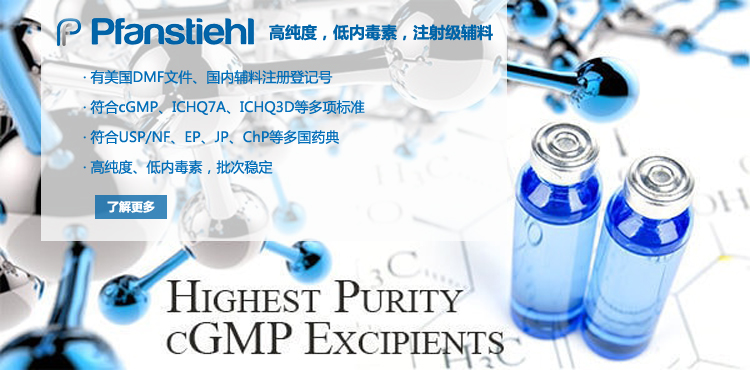 “熱烈祝賀Pfanstiehl的注射級甘氨酸Glycine(G-140)喜獲CDE登記號F20250000403, 這是Pfanstiehl產品獲得的第18個CDE登記號!”甘氨酸在醫藥輔料制劑中應用廣泛,, 可作為緩沖劑,增溶劑,穩定劑等,具有諸多優勢。Pfanstiehl秉承一貫高品質理念,為滿足全球生物制藥行業對于高品質甘氨酸的需求,隆重推出的注射級甘氨酸Glycine (G-140), 具有超高純度,超低內毒素,超低金屬殘留的特點,單獨檢測29種金屬離子,并且新增DNA,RNA,DNA酶,RNA酶和脂肪酶,亞硝酸鹽等多項質量指標的檢測,符合多國藥典規定(USP, EP, BP, JPE, ChP),可用于生物治療性藥物和疫苗的生產。產品信息:· 產品名稱:Glycine, High Purity, Low Endotoxin, Low Metals, USP, EP, BP, JPE, ChP (G-140)· 中文名稱:甘氨酸· 分子式:C2H5NO2· 分子量:75.07 g / mol· CAS號:56-40-6· 產品貨號:G-140產品特點: · 超高純度,超低內毒素,超低微生物含量,超低金屬雜質殘留· 質量指標新增DNA,RNA,DNA酶,RNA酶,脂肪酶和亞硝酸鹽檢測· 符合多國藥典:USP, EP, BP, JPE, ChP· 符合ICH Q3D標準· 符合GMP標準· 已獲DMF和CDE登記號 產品應用:· 緩沖劑· 穩定劑· 增溶劑如果您對Pfanstiehl注射級別Glycine G-140感興趣,歡迎聯系Pfanstiehl 中國區代理商北京西美杰科技有限公司獲得如下詳細的產品概況說明文件和測試樣品。Pfanstiehl Inc.最新產品系列如下,歡迎聯系北京西美杰科技有限公司獲取100g裝免費樣品。北京西美杰科技有限公司為Pfanstiehl中國代理,為客戶提供完善的技術支持與售后服務。歡迎撥打西美杰客服電話400-050-4006或者登陸網站www_xmjsci_com.yyk8.com了解更多信息。 更多>